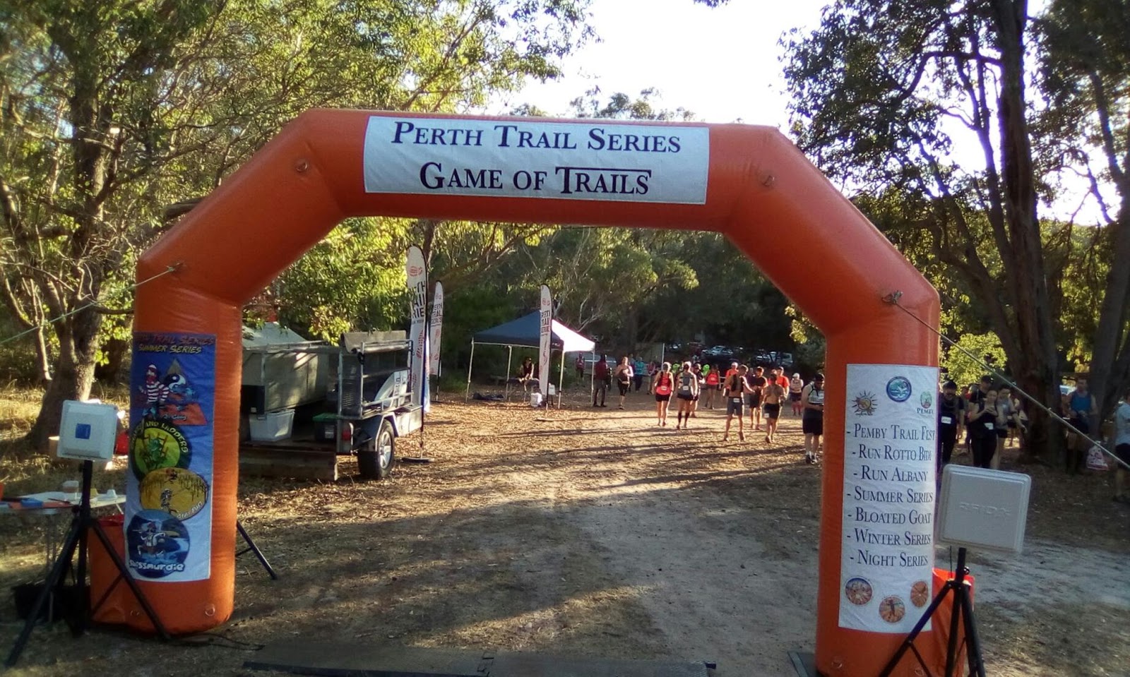 The start/finish arch has a list of some of the Perth Trail Series races on it...